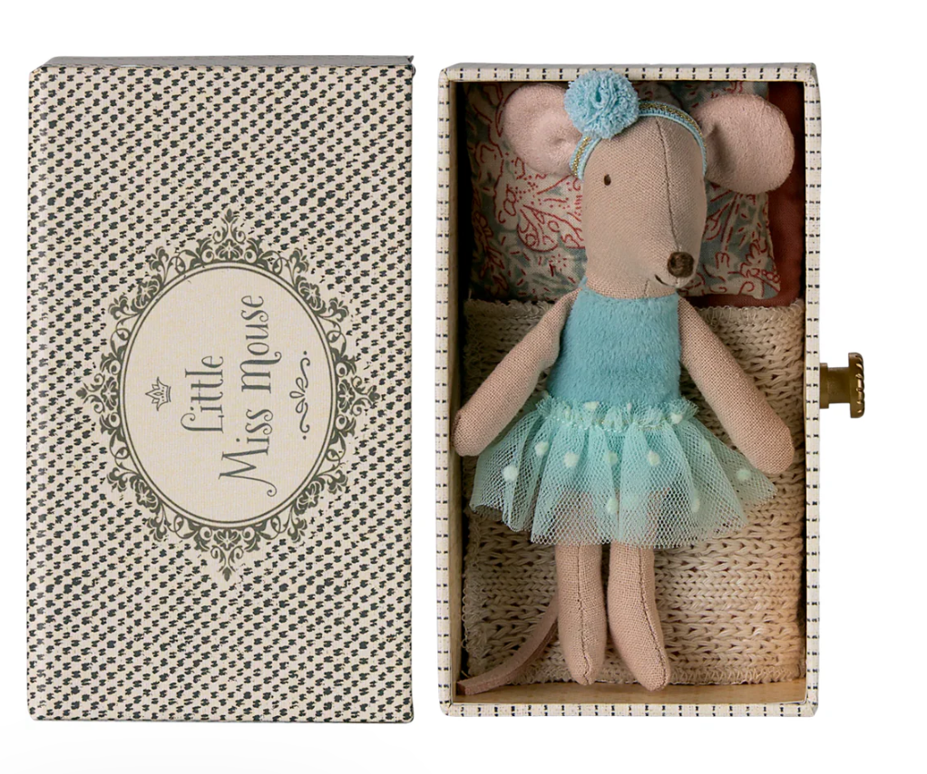 It is important to have a place to rest after a day of dance lessons! The Little Sister Dance Mouse in Daybed from Maileg has everything she needs to relax after a day of pirouettes. With a daybed, pillow, blanket and mattress, she is ready to dance and then ready to relax.