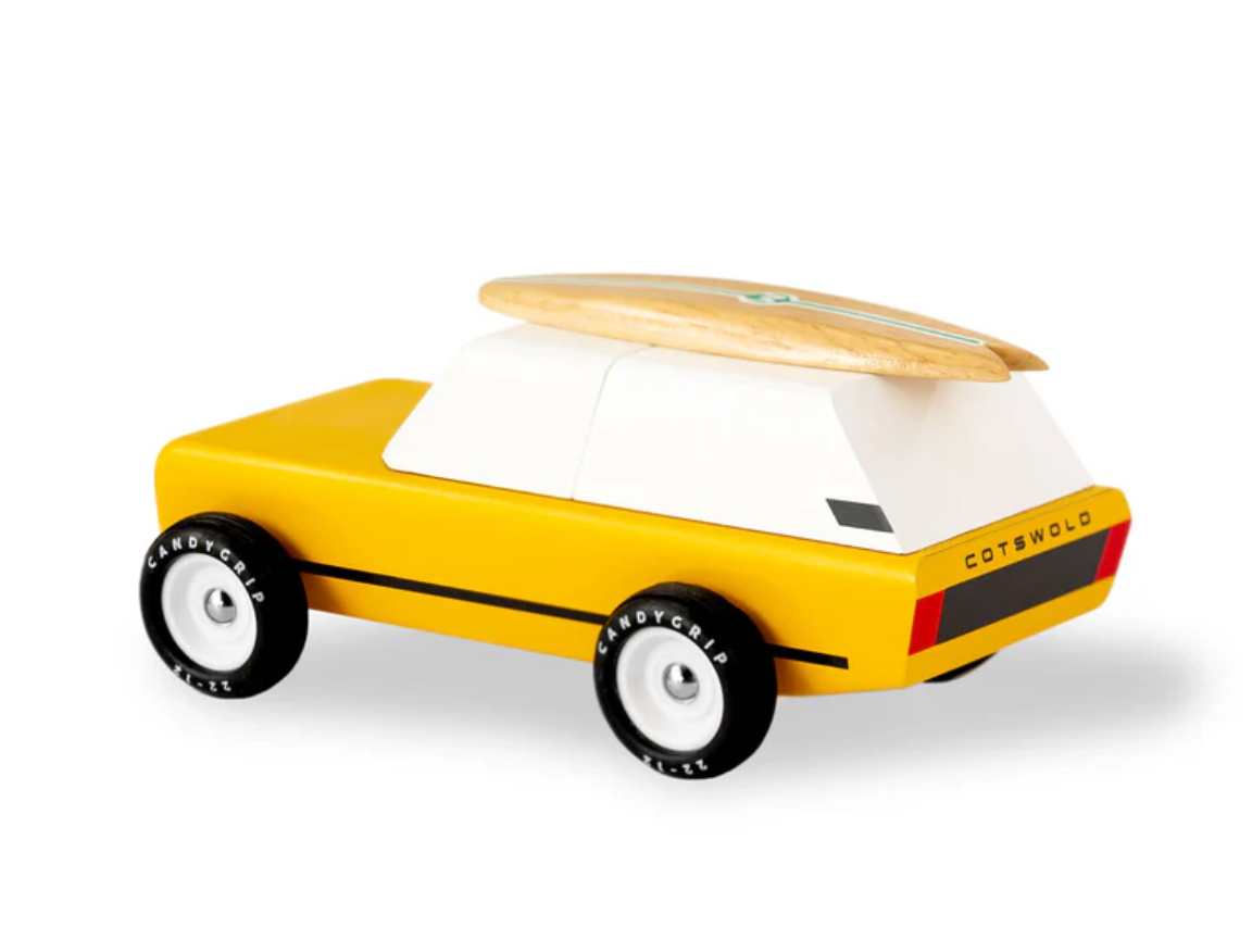 In a quest to overcome the rush for your afternoon tea - or tee? Must take the unpaved shortcut? Does your antiquing passion require copious amounts of comfortable travel? The Cotswold has you covered. The fancy toy vehicle for all connoisseurs. Comes with a magnetic surfboard and magnetic tow hook.