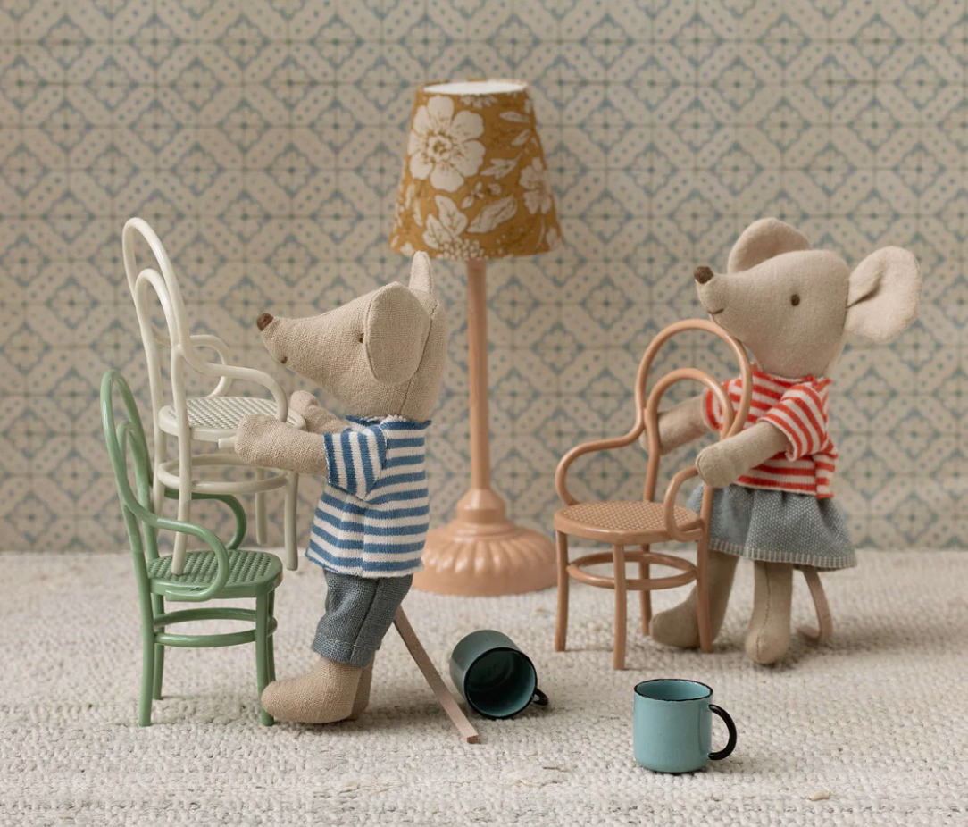 A small chair that fits the Little sister/brother and Big sister/brother mice. Fits perfectly into the small rooms where the mice lives.