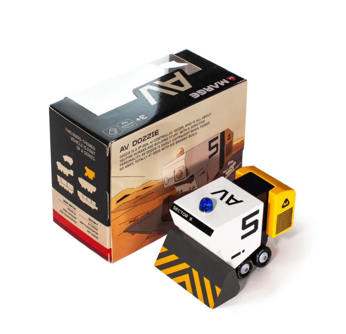 MARGE: Mars Agency for Research + Geographical Exploration. The bulldozer of the Sector 9 crew of vehicles! Dozzie (like 'dozer' in bulldozer!) has a magnetically detachable bulldozer blade and is ready to take on the biggest challenges.