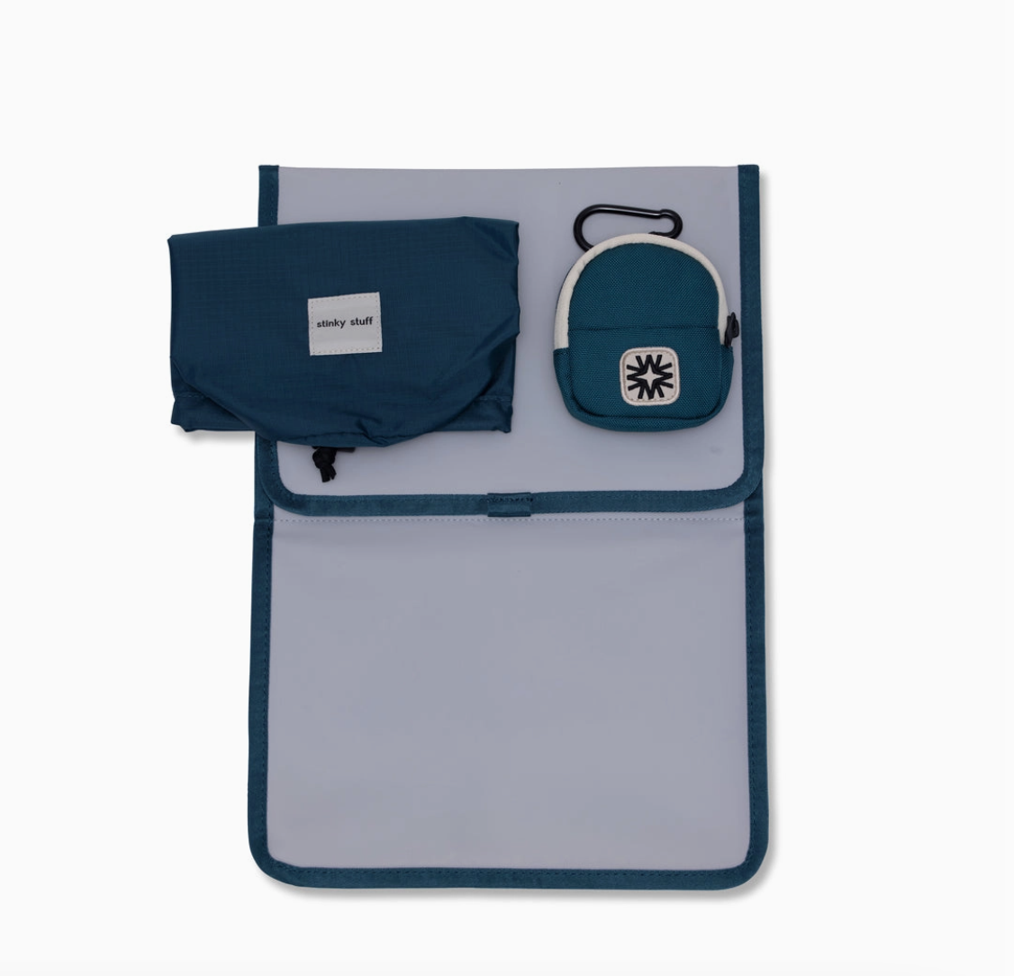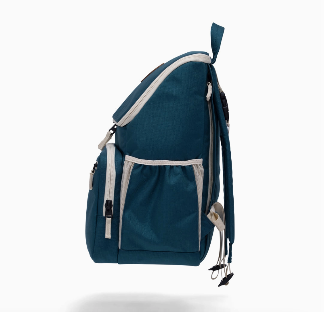 It has taken us having 4 kids and 12 years of parenting to design what we believe is the perfect diaper bag. Our Moon Bag, named after our baby, but built for so much for. This isn't just a baby bag, it's a life with kids bag. Not only timeless and durable, but built to grow with you and not grow out of. Equipped with built-in cooler, padded laptop sleeve, stinky stuff pouch for soiled clothes/diapers, keychain pouch for pacifiers or headphones or keys or chapstick or money or anything else that is small enough to fit into it, padded changing pad, built-in stroller clips, a luggage sleeve to slip on over your roller, and plenty of compartments to keep everything else well organized and ready to grab.