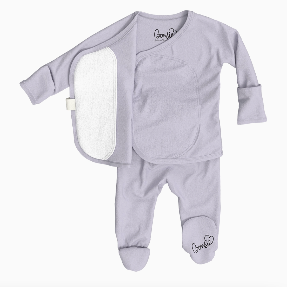 Meet the Bonsie Footie—our bestselling, skin-to-skin superstar designed to make those first days (and nights) easier, cozier, and full of connection. Crafted from our signature ultra-soft, breathable fabric, this one-piece wonder features a wrap-front design that gives you instant access for skin-to-skin bonding—without taking the whole outfit off. No zippers. No snaps. No distractions. Just buttery softness, sweet footie coziness, and smarter design for middle-of-the-night changes, all-day snuggles, and everything in between.