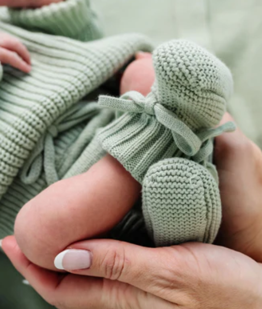knit booties - sage