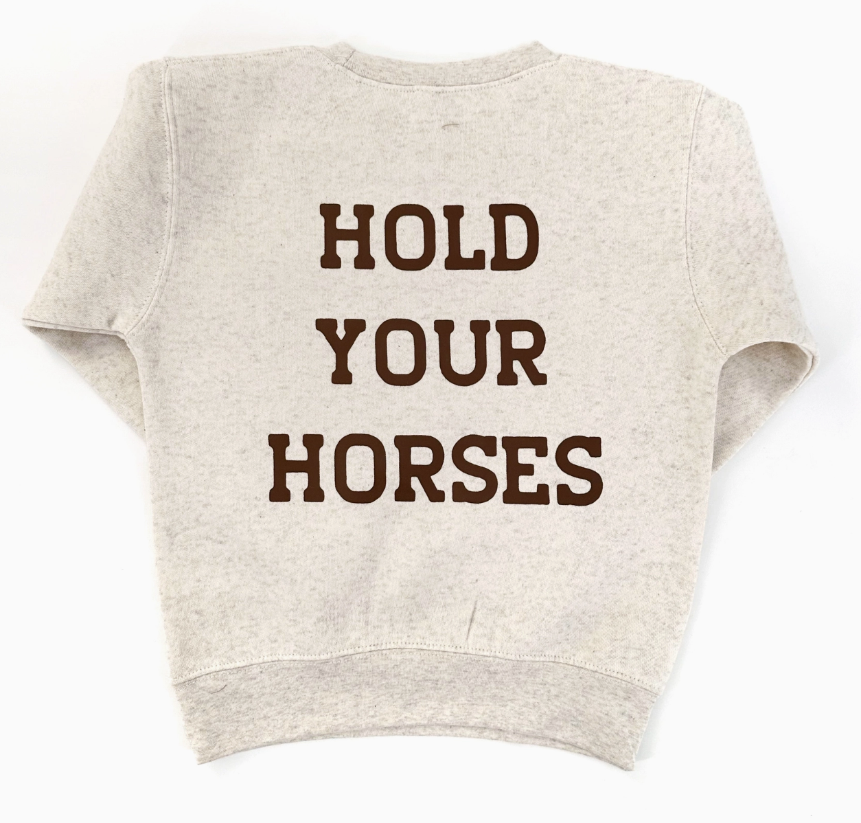 Hold your horses PARDNER, the sheriff is in town! This playful print is matched perfectly to our comfortable natural colored sweatshirt. The screen print is durable and can withstand the hard play that we know your little sheriff loves!