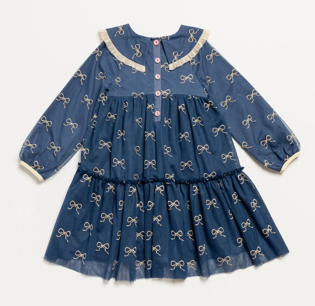 Your little one will look as pretty as a present in the woven Bowie Dress! This dress is the best gift around with delicately embroidered bows, layers of tulle mesh lined in lightweight cotton, and ruffle details that feel sweet and feminine. In a beautiful blue shade, this dress will complement the spirit of the holidays and be versatile enough to wear beyond the season—think birthday parties, parent/child dances, school performances, and more!