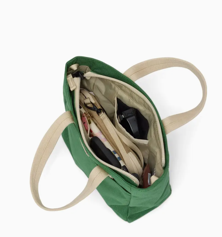 Honey I Shrunk the Valley Tote... and ended up with this adorable Tiny Tote! Our Tiny Tote is the perfect bag for kids to match their parents' big kid tote or the perfect mini purse for adults. On the outside, you'll find a front sleeve (perfect for receipts, airline tickets, etc) and a back zipped off pocket with an attached key clip on the inside. Then the interior of the bag has a fleece lined pocket for a cell phone or sunglasses and two other pockets for whatever your heart desires. After the top is zipped off, if you choose to accept, you can attach a shoulder strap to the clips on both ends, turning your handheld bag into a hands-free bag! Now available in 4 colors.