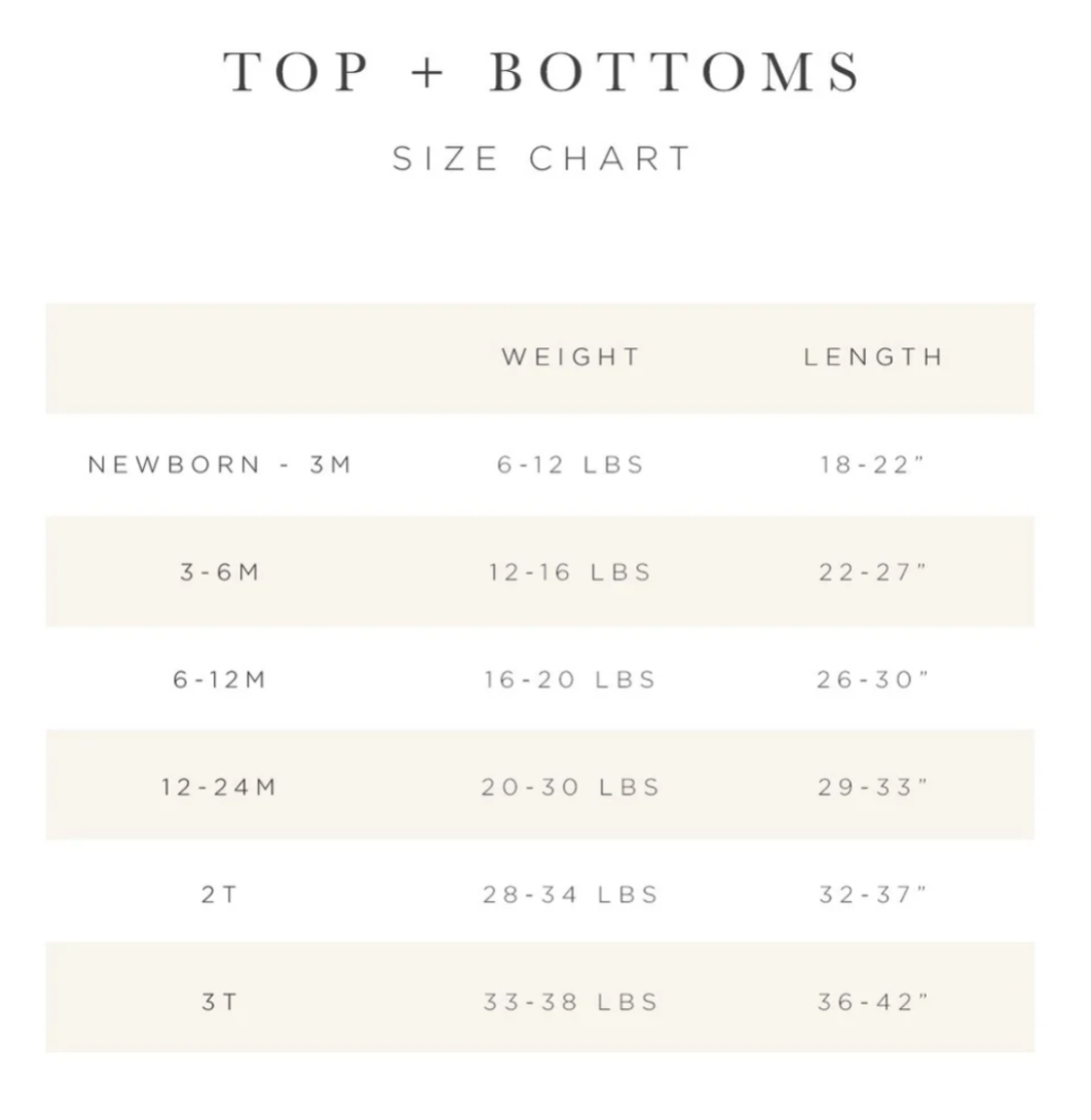 Good things come in pairs and our tops + bottoms are no exception. They’re made from our signature silky-soft material for a stretchy, comfy fit with functional buttons and fold-over waistband for room to grow (or to wear high-waisted). Say goodbye to socks that slip right off with built-in footies (on the newborn size only) to keep those tiny toes warm without the fuss. Unbelievably sweet mixing & matching approved.