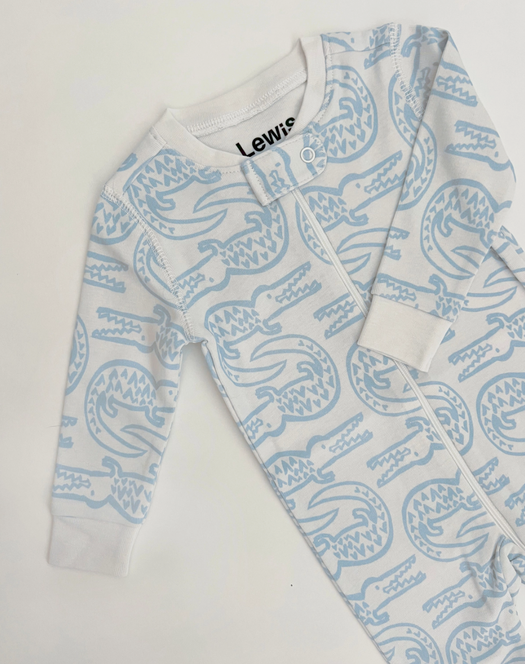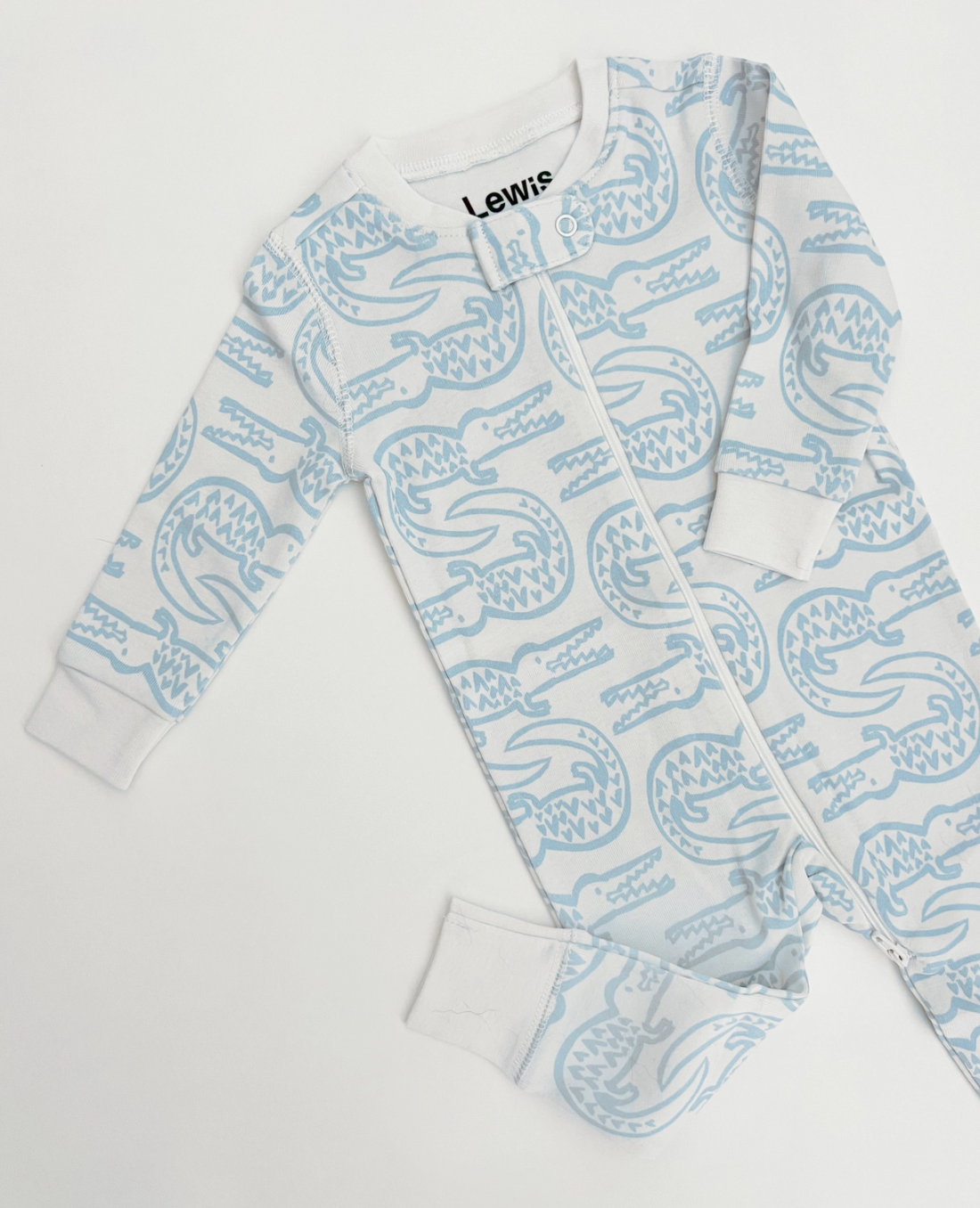 Nothing cuter than little ones in printed pajamas! Our Zip Sleeper features a double zipper up the front and snap tab at collar. Made from a super soft ribbed cotton, which allows for a little extra give and roomier fit that also fits baby longer! Fits true to size. We love Alligator for his toothy grin and spikey body.