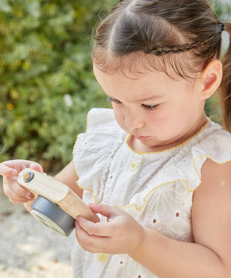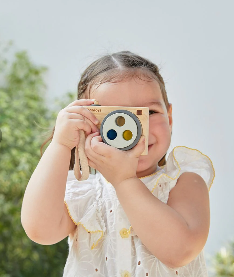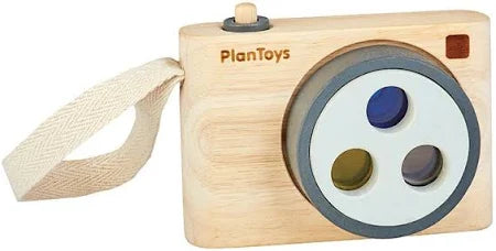 Our Colored Snap Camera is a great way to encourage imaginative play. It has 3 different lenses: clear, yellow and blue with a viewfinder to see through. Kids will enjoy rotating the lenses to see the world in different colors!