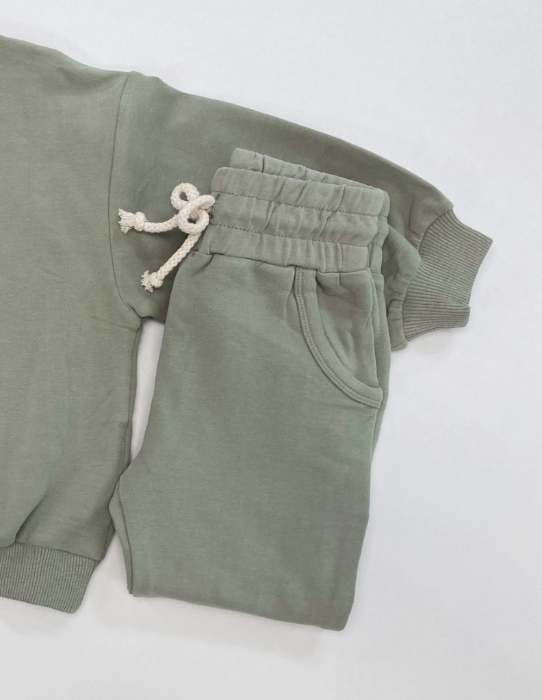 The softest cotton french terry fabric that's lightweight and easy for your little one to play in, but still cozy enough for cooler temps. A go-to pair of joggers featuring pockets and a functional drawstring front!